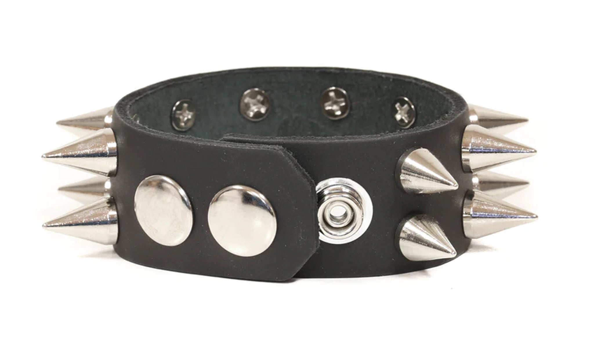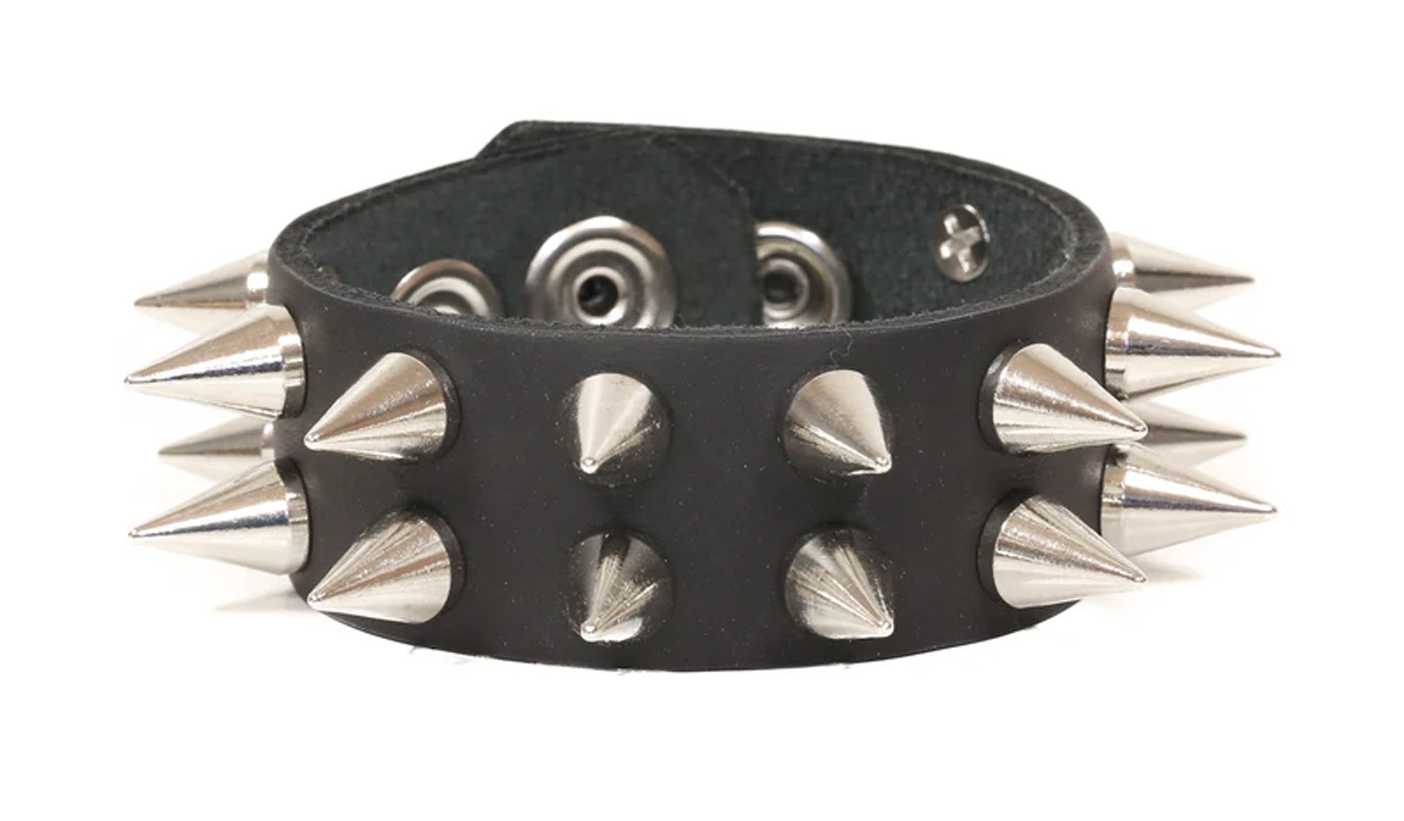 Leather 2 row spiked bracelet with snap closure