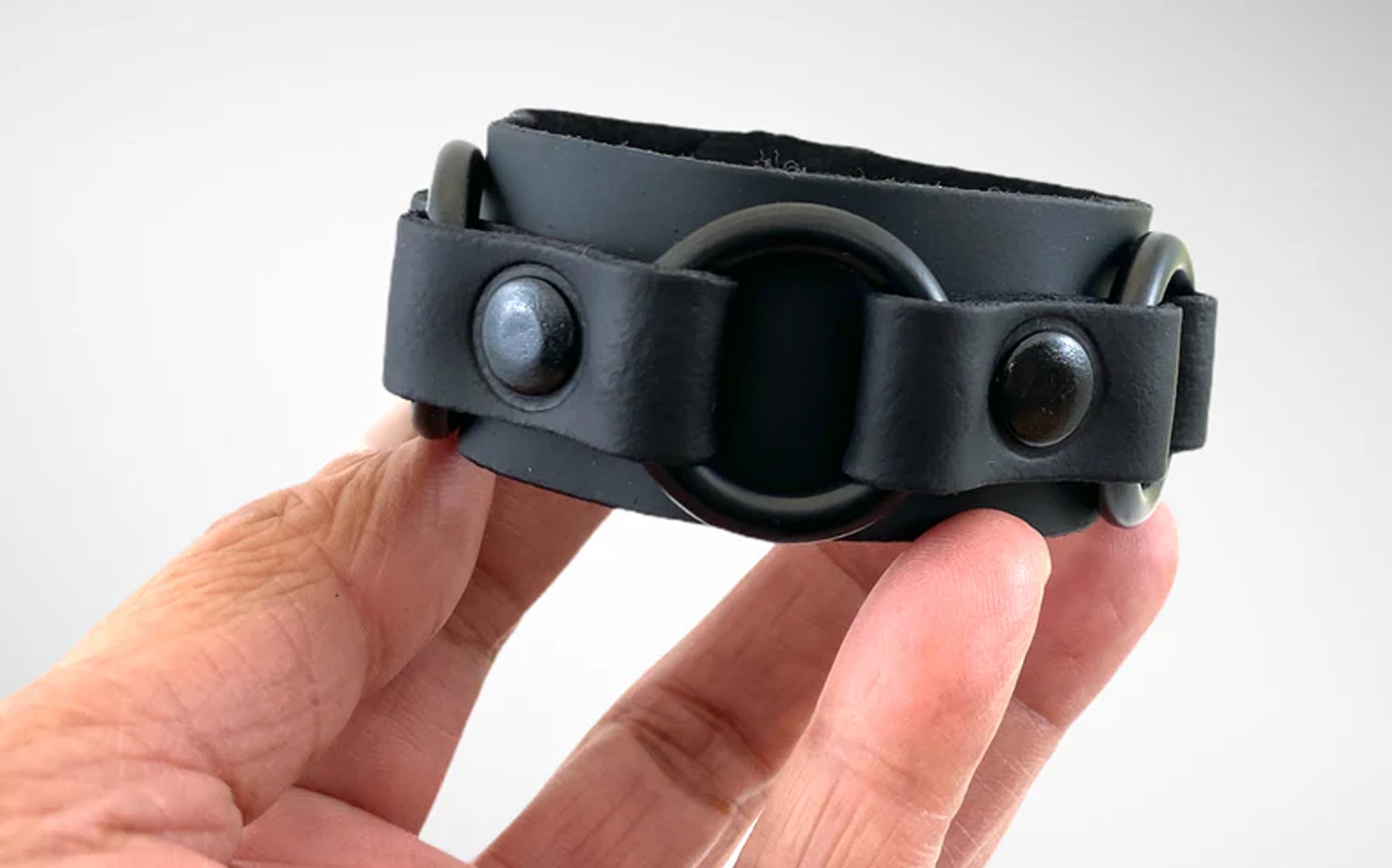 This bracelet features three rings and is secured with a snap closure for a reliable fit.