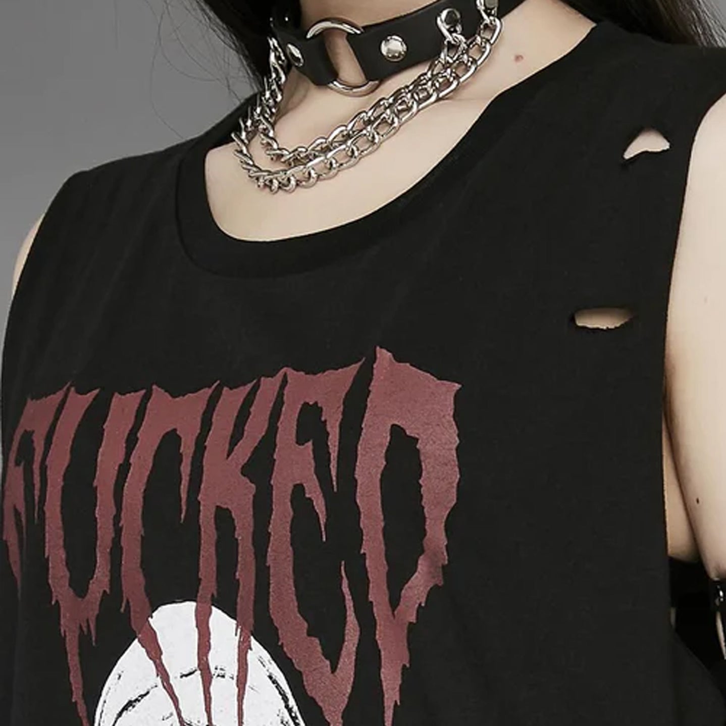 Half-inch O-ring choker featuring a hanging chain design.