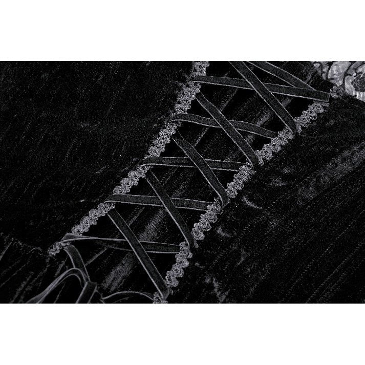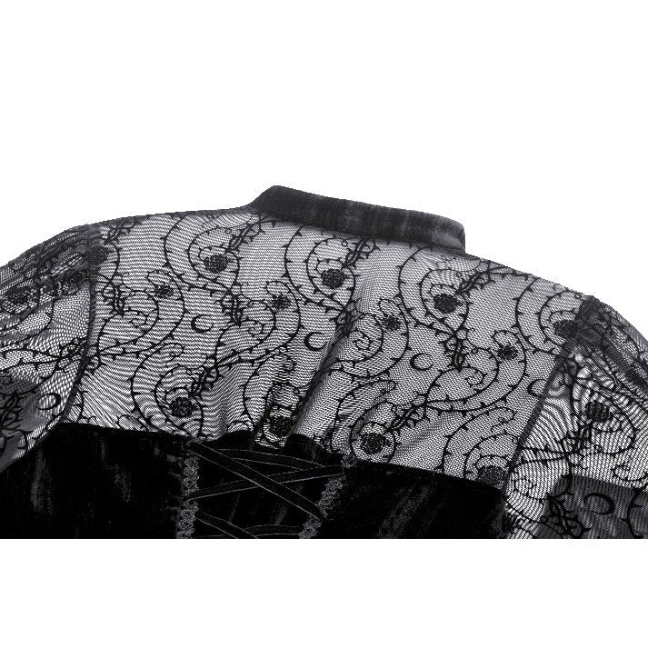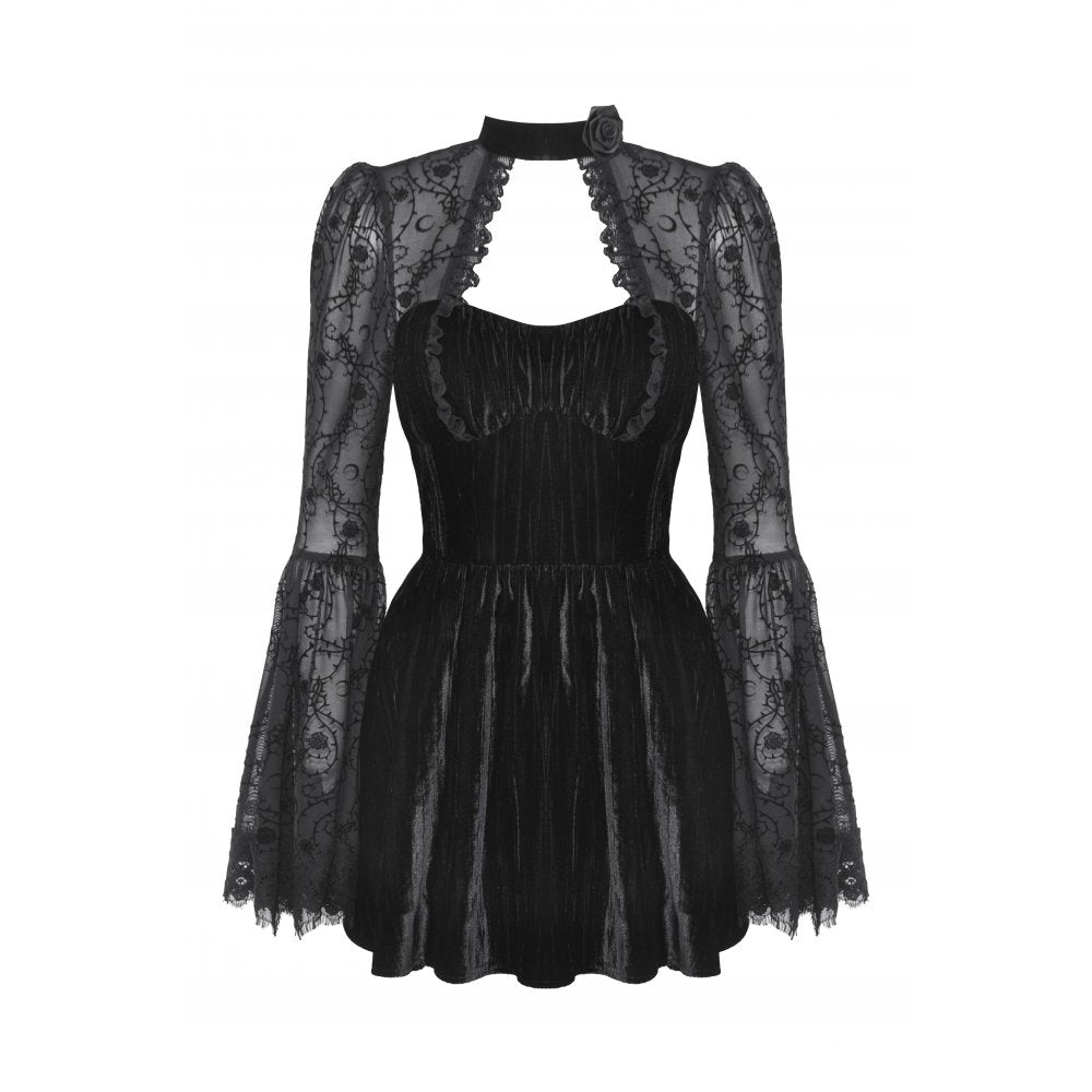 Crafted with meticulous attention to detail, this dress features voluminous bell sleeves and striking gothic-inspired embellishments that command attention. Delicate lace edging adds refinement, while the structured corset back provides adjustable support and a personalized silhouette. A secure zipper closure ensures effortless wear and a polished finish.