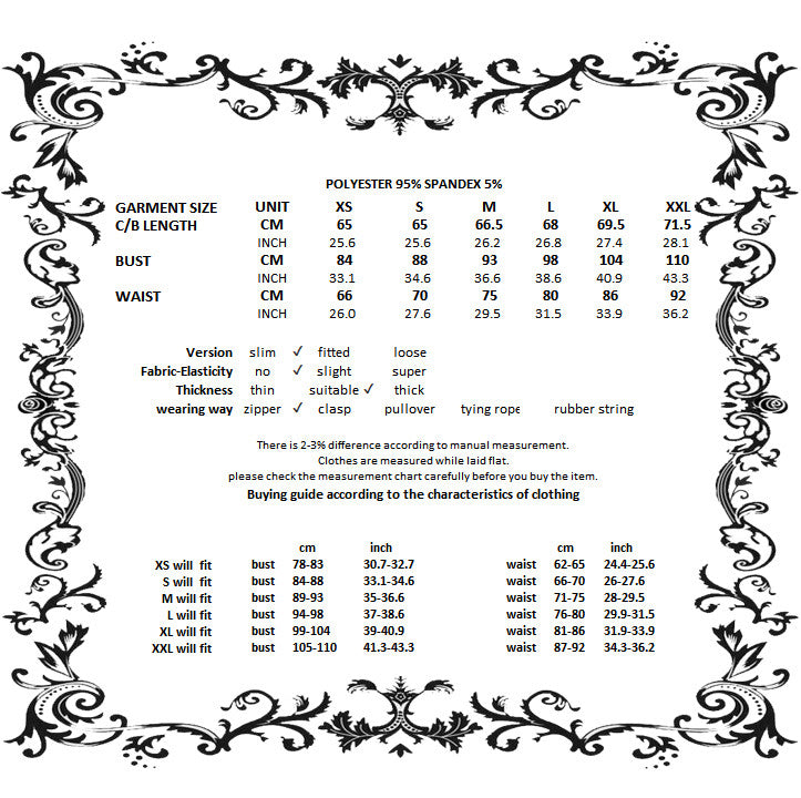 See chart for more garment information