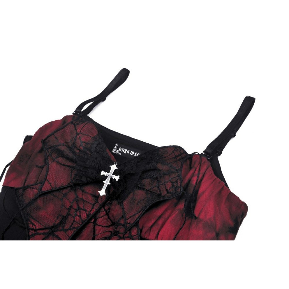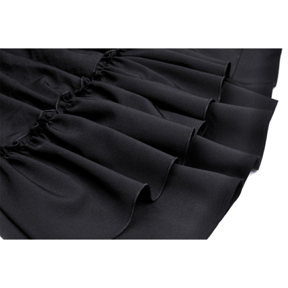 This elegant party dress features a distinctive spider web bow embellishment at the front, complemented by a delicate cross charm for added sophistication. The ruffled hemline creates movement and visual interest, while the convenient zipper closure ensures easy dressing.