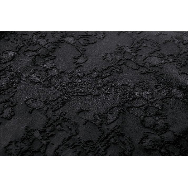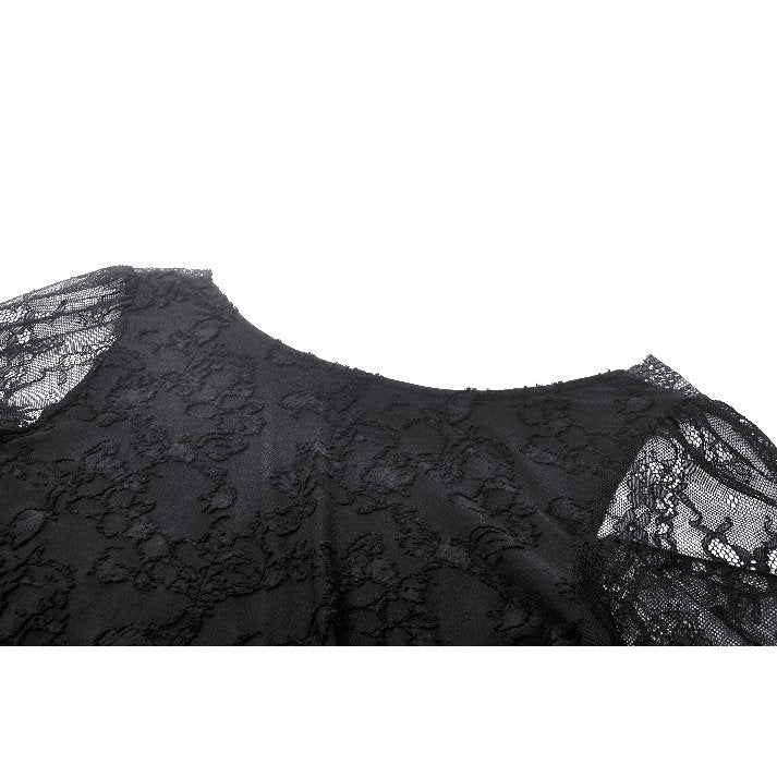 This black romantic bell-sleeve lace top perfectly embodies Gothic romanticism. The lace trim at the neckline harmonizes with the jacquard-knit body, creating a delicate texture. The layered ruffles at the bell sleeves add a unique Gothic flair, making this piece a true representation of Gothic romance.