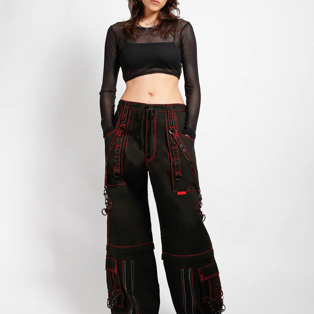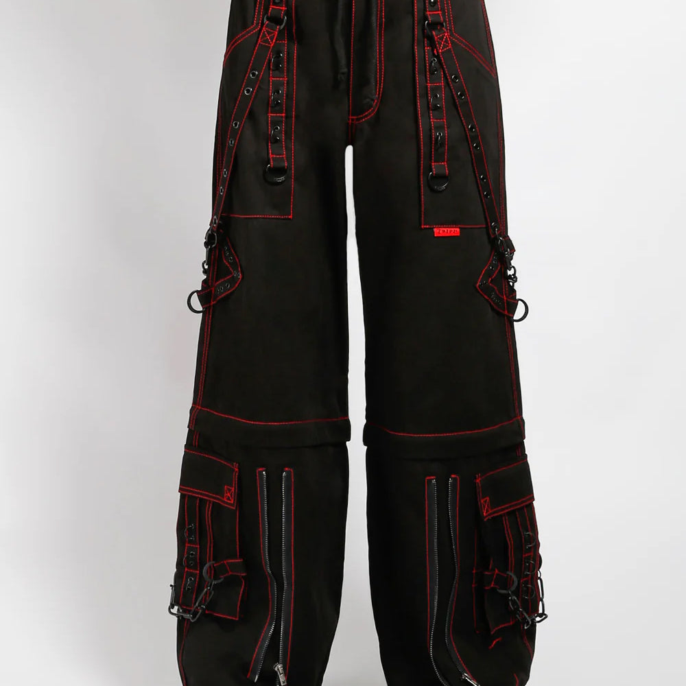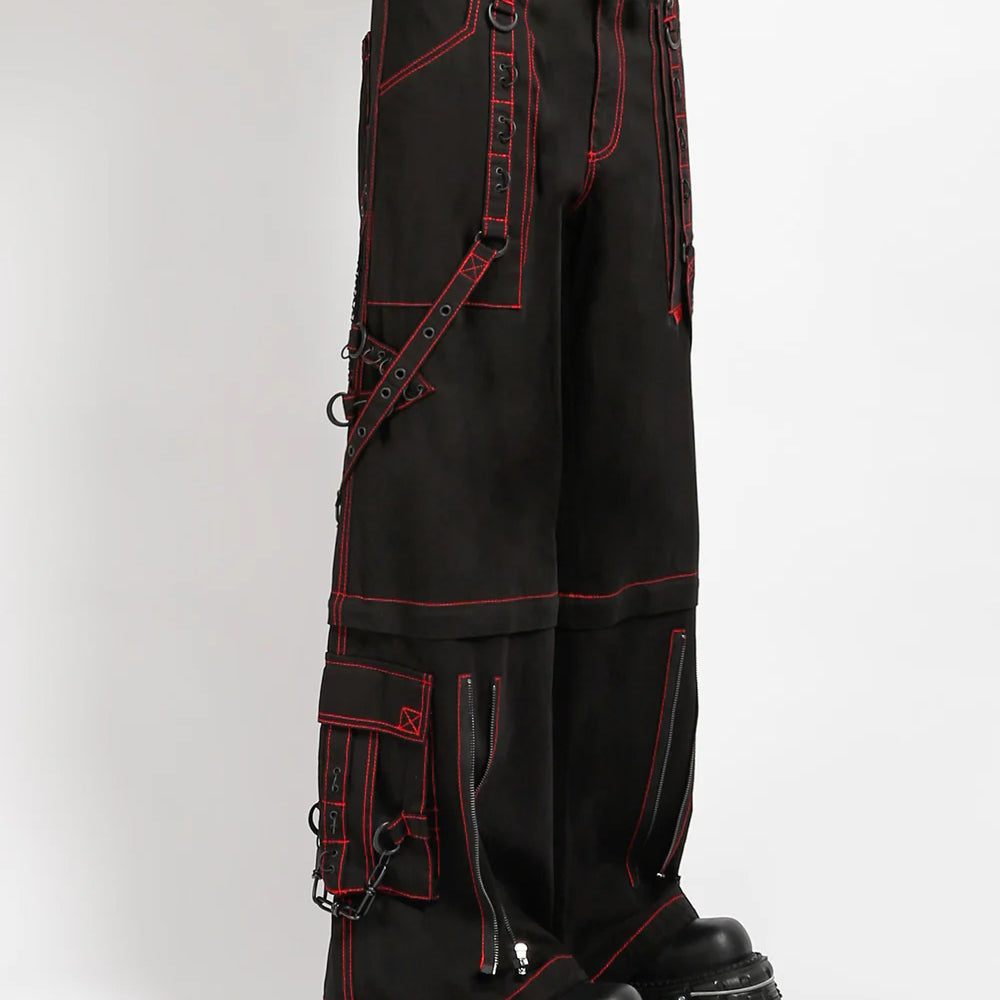 These pants have all black hardware feature red stitching zip off into shorts, removable straps, adjustable ankles, D-rings, and deep pockets.
