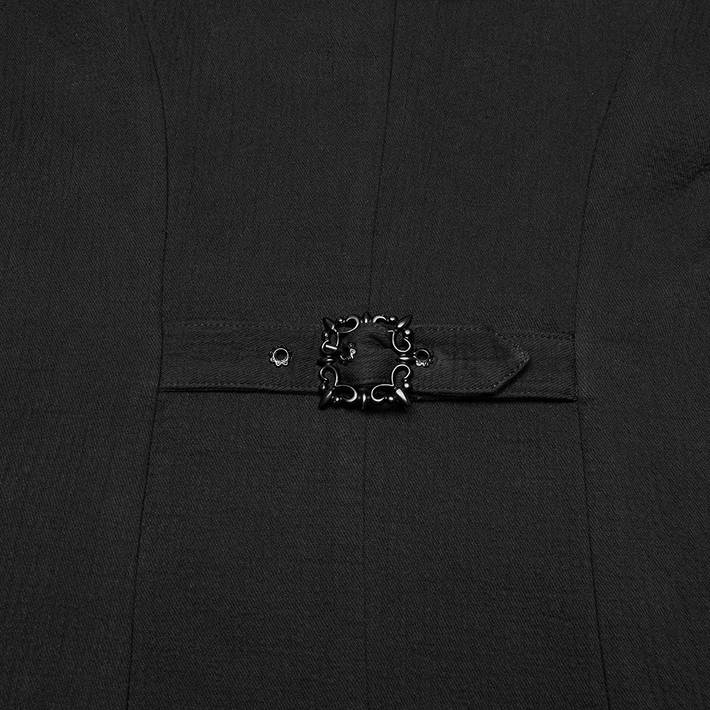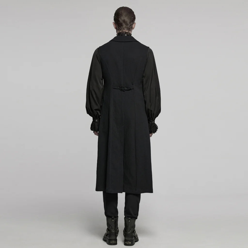 Long tailcoat design with intricate button detailing that embodies a regal gothic allure.