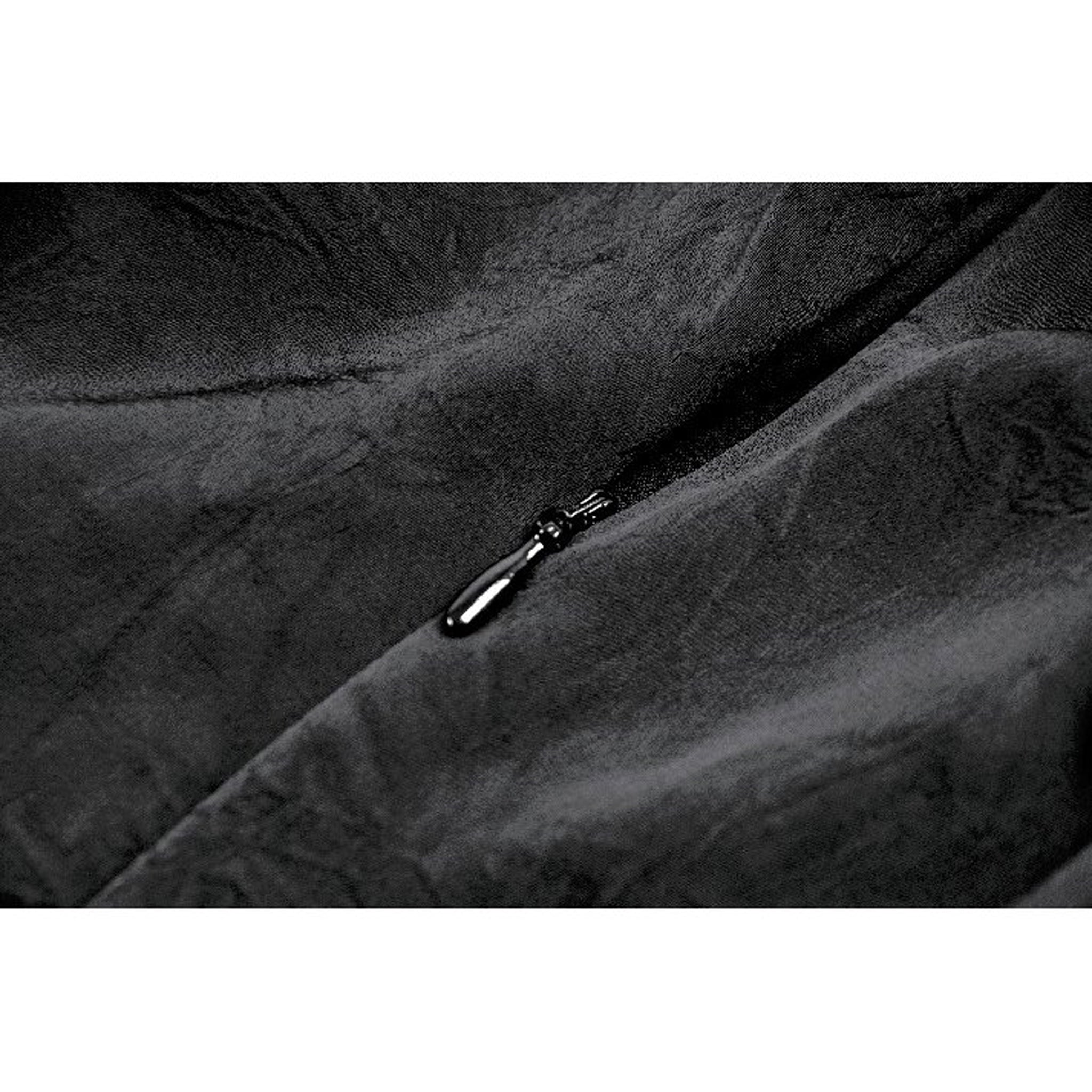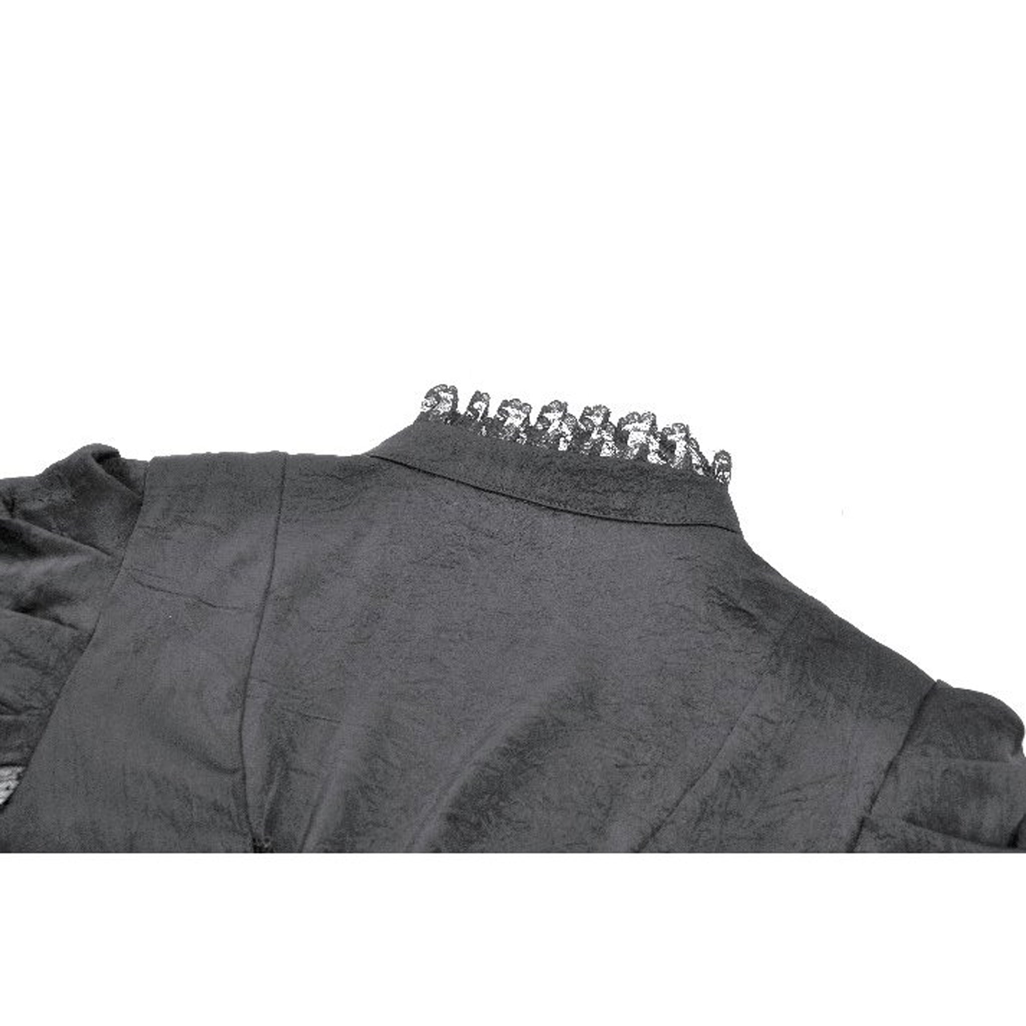 Embrace your inner elegance with this striking Gothic Victorian dress, where textured crinkled fabric meets delicate lace and ethereal mesh. The dramatic high collar frames your face beautifully, while the U-shaped lace bodice layered with tiered sheer mesh creates stunning visual depth. A functional button placket secured with a sapphire brooch and inner snap ensures both style and security, followed by five coordinating sapphire buttons. The thoughtfully designed sleeves blend pleated fabric at the shoulder for shape, stretchy lace for comfort, and voluminous triple-layered mesh at the cuffs for that coveted regal silhouette. Complete with a lace-up back for the perfect fit.
