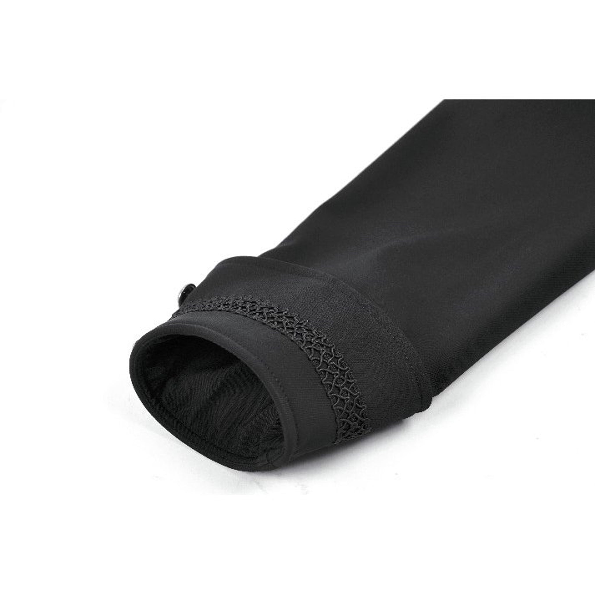 Embrace your inner darkness with this enchanting Gothic robe that commands attention. The striking faux two-piece cape design creates an alluring asymmetrical silhouette, with shorter front panels and elongated back sections that flow with mysterious grace. Delicate synthetic trim frames the neckline and cuffs for a polished touch, while antique-inspired buttons accent the cape front with authentic Gothic charm. Practical deep front pockets make this dramatic piece as functional.
