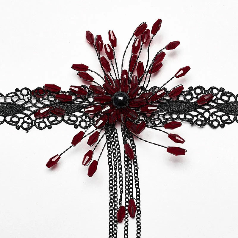Delicate lace detailing pairs beautifully with striking blood-drop beads to create a necklace that captures gothic elegance. The temperament chain pendant adds sophisticated dimension, while an adjustable back chain ensures a perfect fit for any wearer. This piece celebrates your unique style with confidence and grace.